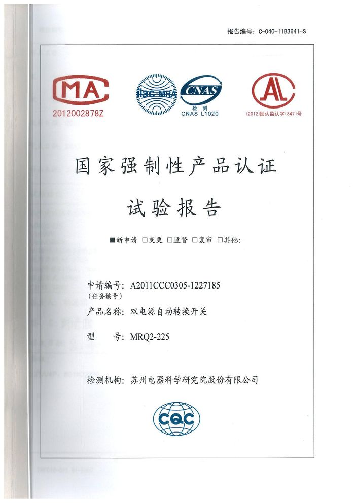 MRQ2-225雙電源資質(zhì)證書