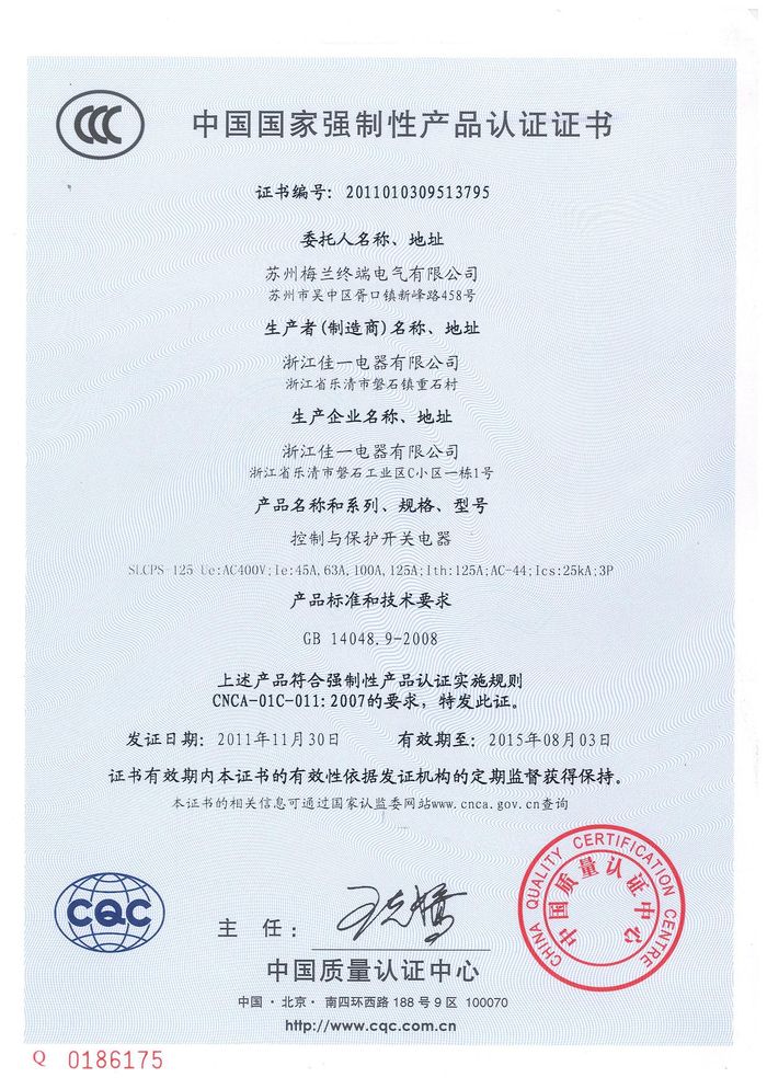 SLCPS-125控制與保護開關資質證書
