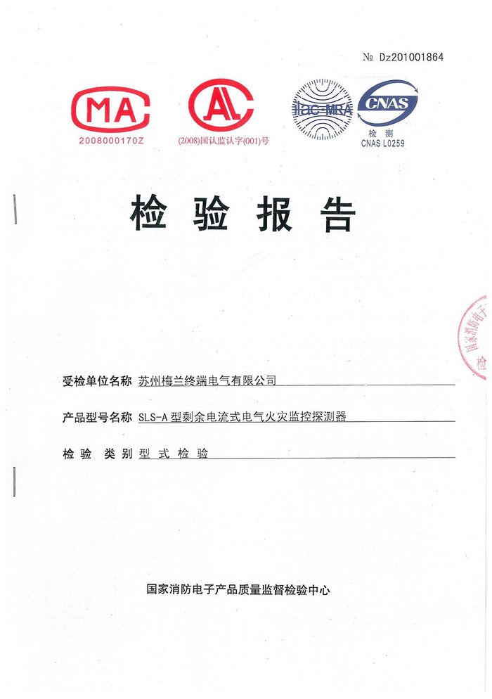 SLS-A型電氣火災監(jiān)控資質(zhì)證書