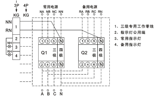 開(kāi)關(guān)工作有三個(gè)狀態(tài)位置供用戶選擇:常用電源(N)合、雙分、備用電源(R】合,開(kāi)關(guān)具